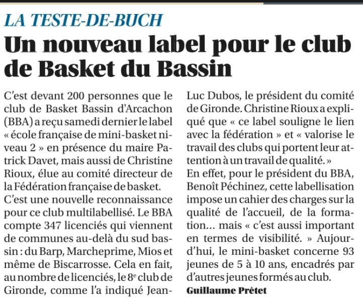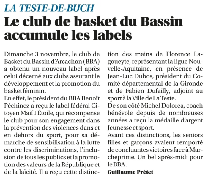 Dans la presse... Détails Écrit par : Dolorea Michel Catégorie : Presse Publié le : 4 Août 2025 Clics : 368 Montée en Dm2 Remise Label École Française Mini Basket Les Talents de l'Égalité Label Citoyen 1ère étoile