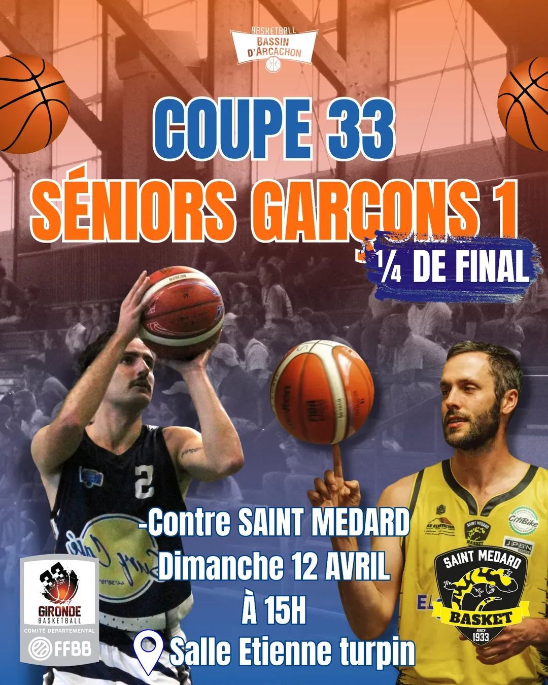 | BASKET BASSIN D'ARCACHON - 1 (+7) | 83 | 79 | IE - CTC AUDENGE-BIGANOS-LANTON - ENT.SPORTIVE AUDENGE LANTON |